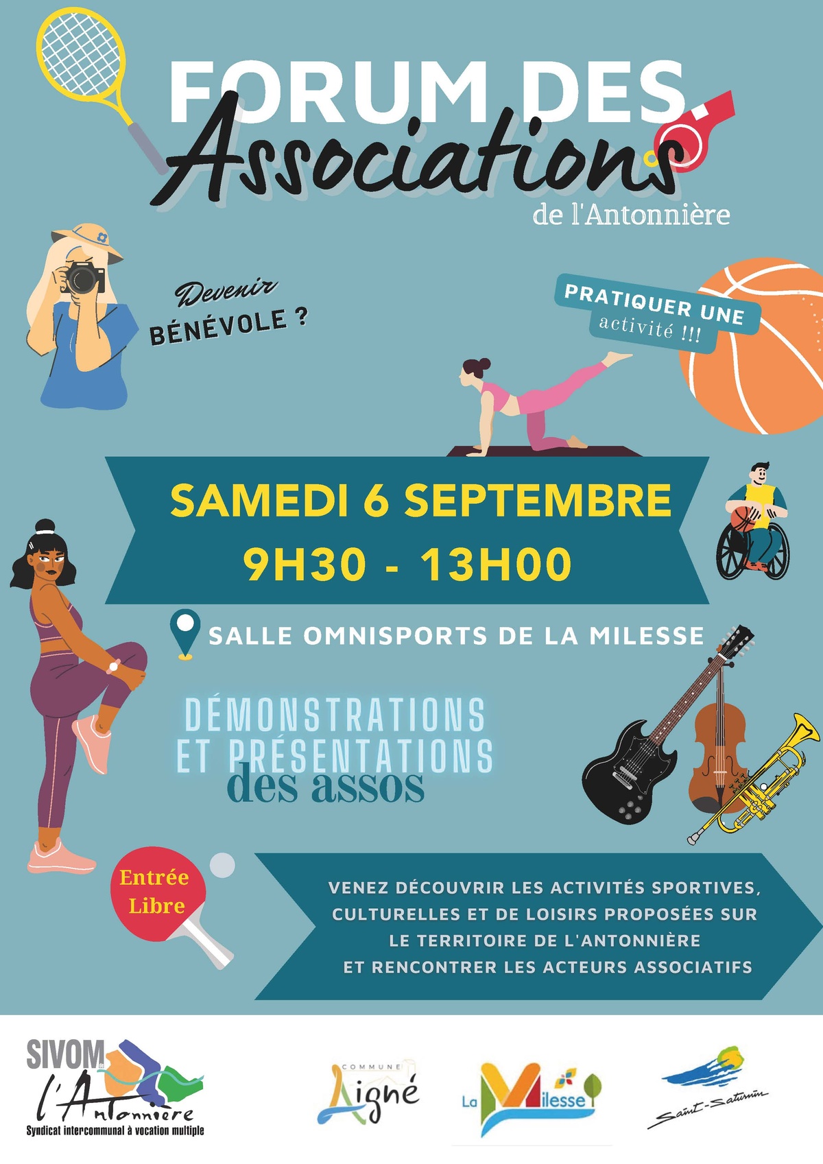 Le Forum des Associations de l'Antonnière est une initiative du SIVOM de l'Antonnière et de ses trois communes : Aigné, La Milesse et Saint-Saturnin.